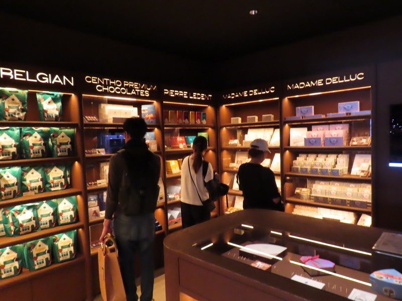 階段を下りると、フィリップ国王夫妻の写真がありました。パビリオンを出て、続いてはショップの列へ。ここは数分程度で中に入れました。ジンジャーブレッドやBiscoffのクッキーなどいろいろあるが、やっぱりベルギーチョコ。奥にチョコレートが集まっている部屋があり、NEUHAUSやWITTAMER、GODIVAなど有名なお店が並んでいる。LEONIDASもある。暑い中を持ち歩けるように保冷バッグに入れてくれる。まあ、ここはクッキーやワッフルなどを買いますか。