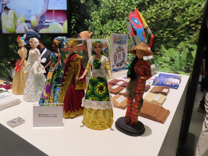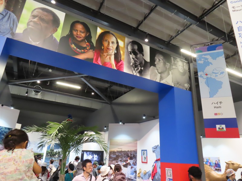 カリブ海・首都ポルトープランス。島の西半分がハイチで、東半分がドミニカ共和国。国旗の主な色が赤白青が共通点だな。かなり貧しい国とのイメージがあるし、2010年の地震で壊滅状態になったはず。そんな状況でも来てくれたのね。手作りの衣装がいくつか展示されているのは、伝統的なものなのかな。街並みや遺跡の写真もあり、歴史ある国ということもよくわかる。そういえば各国のナショナルデー、10/11に行われるハイチが最後らしい。閉幕前に、ハイチのパワーで盛り上がってほしいものです。