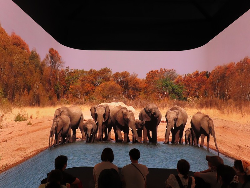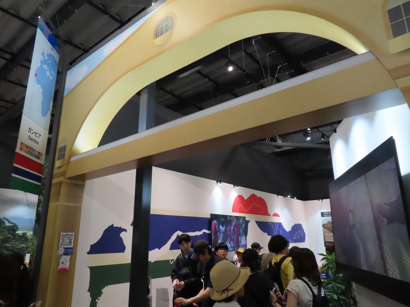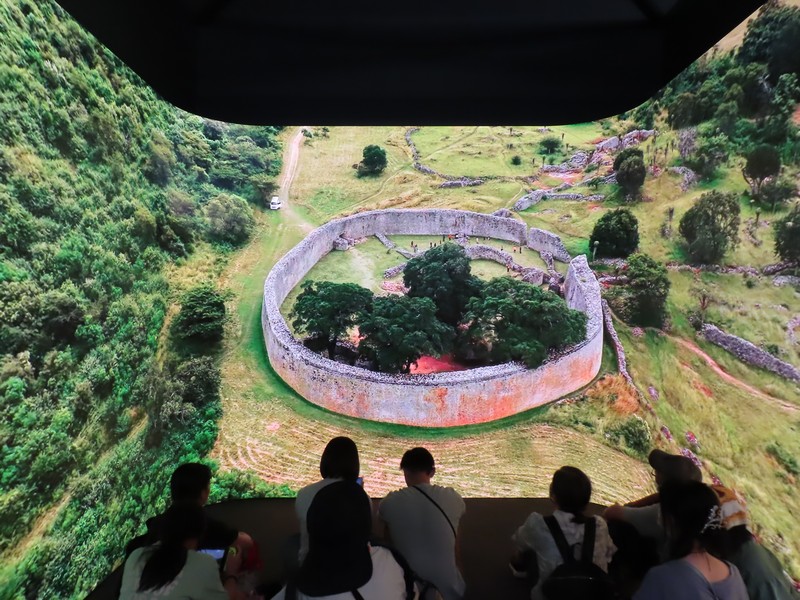 南部アフリカ・首都ハラレ。野生動物も多く、グレーとジンバブエ遺跡やビクトリアの滝などの世界遺産、観光名所も豊富な国。パビリオンに入ると、木彫の動物が迎えてくれる。奥には大きなモニタがあり、ここで野生動物や遺跡、巨大な滝や現地の人々の歌や踊りが映される。生き生きとした映像で、まさに目の前にいるかのような迫力だ。VRの体験もあったがかなり待ちそうだったのでそれは断念。でもこのモニタでも、しっかりと楽しめました。