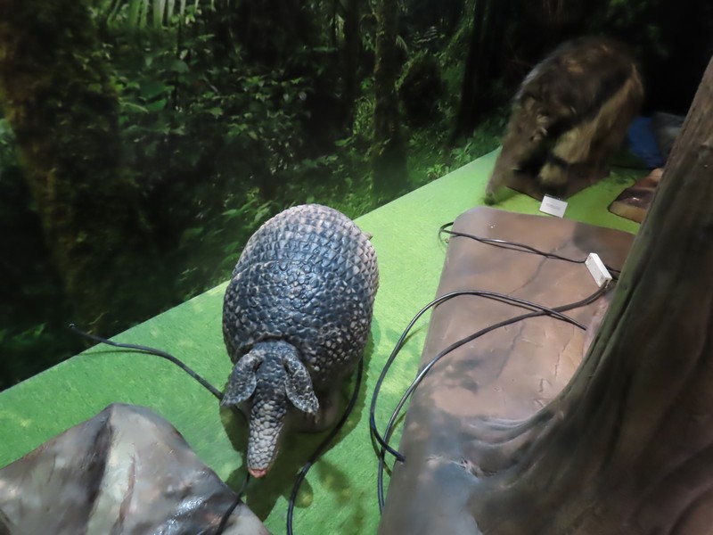 南米・首都ジョージタウン。南米で唯一、公用語が英語の国。ここは熱帯雨林のイメージなのか、深い森の中に巨大なジャガーとナマケモノのオブジェ。ジャガーは吠えているし、ナマケモノは楽しそうな表情だ。他にもコンゴウインコ、アルマジロ、オオアリクイやホエザルなどがいて、背景には滝が描かれている。豊かな自然と生物の多様性が表現されているのかな。数年前に油田が発見されたそうで、今後の経済成長が期待できる国とのこと。