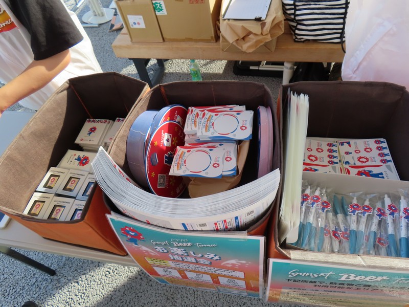 これにてコモンズB、すべて完了。じっくりと見ることができました。ちょっと休憩したいが、どこも混みあっている。こういうときは、西側のサンセットビアテラス。少し歩くが確実にゆったりできる場所だ。途中のキッチンカーでタコ焼きと枝豆、ビールをゲット。サンセットビアテラスは昔よりは人が増えたようだfが、まだまだ穴場感があってゆったりできる。しばしこの時間を楽しもう。ただここの難点は、屋根はあるが西日を遮るものはないので時間が2つにつれて眩しくなって来る。16時になりそろそろ眩しくなってきたころ、ちょうど16時からくじ引きが始まる。さっきのキッチンカーのレシート、1000円で一回くじが引けるのだ。なので3回引けるのだが、すべてはずれの残念賞。うちわと万博グルメガイドをいただきました。あとはスタンプ台紙をいただき、スタンプゲット。ここはもう一つ、くじ引き参加なしでも押せるスタンプもあるのでそちらも並んでゲット。スタンプ、特に限定と言われると集めてしまいます。