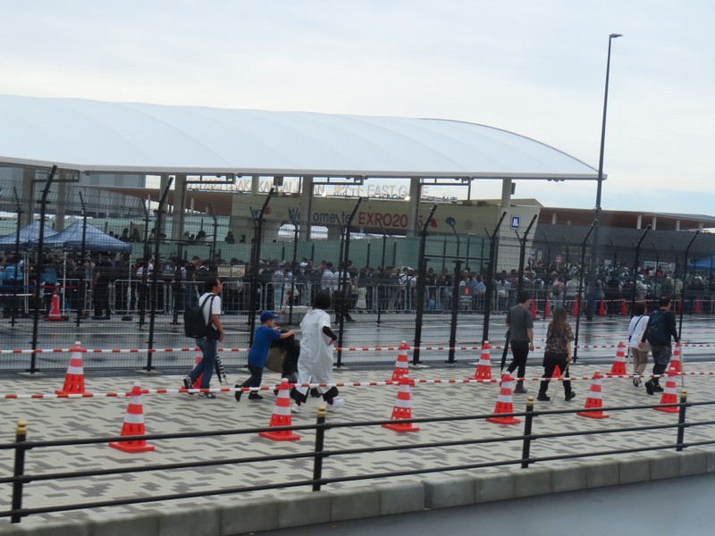 30分ほどで、夢洲に到着。東ゲートには当日券を求める長蛇の列。10月に入り駆け込みで来る人が多くいるようだが、予約なしは相当早く来ないと当日券は取れないだろうな。早めに動いておいてよかったです。西ゲートに到着したのは8:50頃、9時組の入場が始まるころ。11時組の列はまだそんなに人は多くない。9時になり、いつも通りコブクロのテーマソングが流れる。やっぱりこの瞬間はワクワクするね。何とか雨も上がったようで、ここからは指示に従い移動しつつ、少しずつ前へと進む。今日はスムーズだったのか、10:30くらいにはゲートの目の前まで移動。その後セキュリティを通り、10:40には入場することができました。よかった。