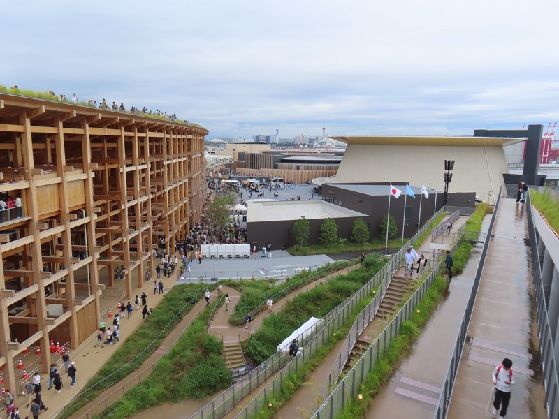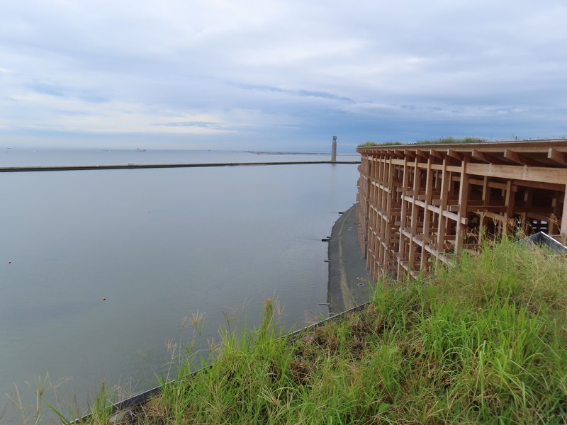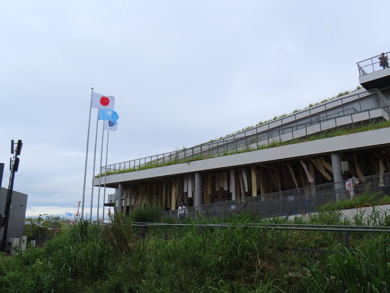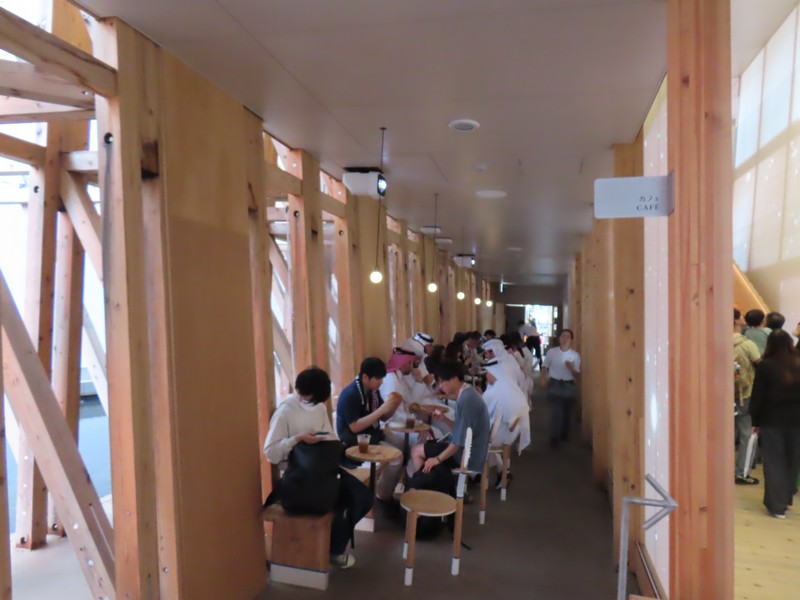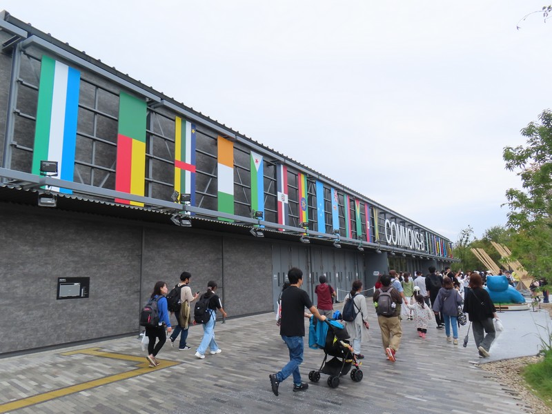 食後は近くのナショナルデーホールへ。今日はソマリアのナショナルデーだ。これまでいくつかの国のイベントを覗いてきたが、中に入るのができていない。今日ものぞくだけだが、ここは入れずじまいかな。朝来て並べばいいのかもしれないが、ちょっとタイミングがなかったな。でもこの建物沿いの通路を上がることができるので、最上部に行ってみよう。大屋根リングが同じ目線の高さで見えたり、海に面したところが見えたりと、今まで見たことのない大屋根リングを楽しみました。反対側を見ると、大阪港のWTCやATCなどが見えている。夢洲が大阪湾に浮かぶ島だということがよくわかる。