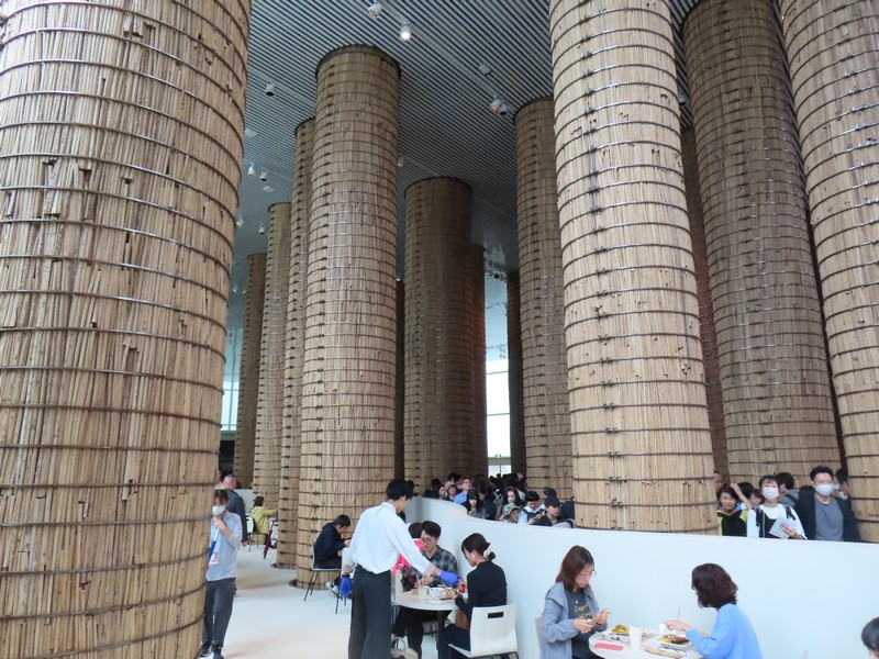 UAEパビリオンに到着。この時点で、2時間待ちと言われる。まあ、それよりは早く入れるでしょう。建物脇の待ちやすい場所なので、ゆっくり待ちますか。夏の暑い時期なら厳しいが、今の時期なら問題なし。この気候で、もっと人混みが少ないといいのにね、本当に4月5月あたりが懐かしいです。UAE館の前には木が植えられているが、その根元に大量にあるのはデーツの種。パビリオン内の柱はナツメヤシの葉や種などを混ぜ込んだコンクリートが使われているなど、サステナブルな取り組みがいくつも見られる。少しずつ列は進み、待ちながら12:30のモンハンチャレンジはあえなく撃沈。うまくいかないもので。そして待ち始めて1時間半ほど経った13時過ぎ、ようやく中に入ることができました。