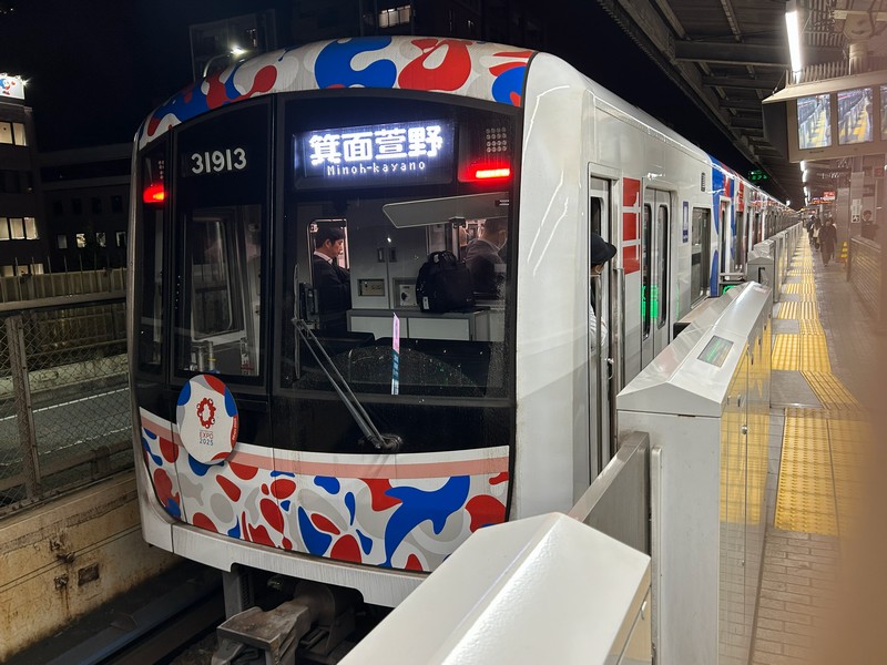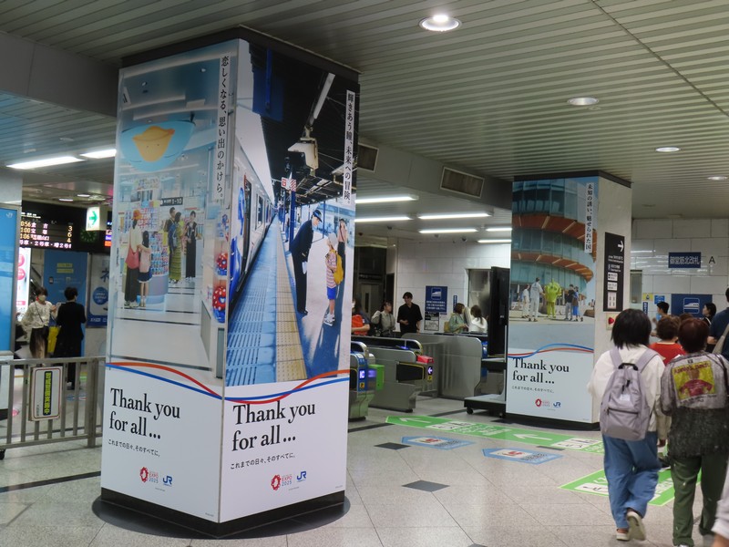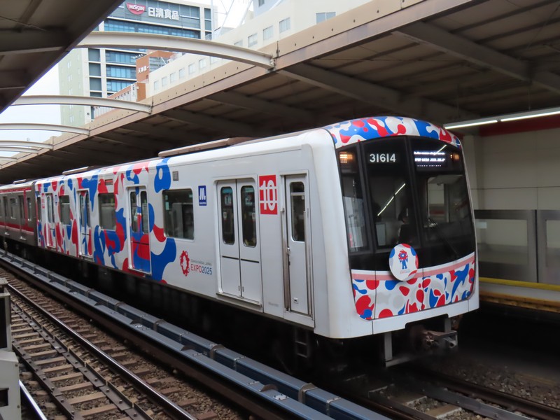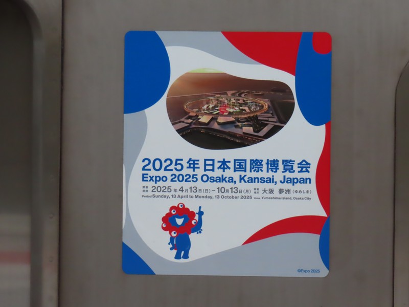 大阪メトロは万博最寄り駅の夢洲を抱えるだけあり、あちらこちらに万博モードが見られました。期間中、慣れ親しんだのは車両のラッピング。先頭と最後尾の車両が白をベースとして、赤や青のたくさんのこみゃくたち。楽しくなるデザインだ。運転席前のヘッドマーク、先頭車両は万博シンボルマークで最後尾車両はミャクミャク。閉幕後も走り続けていたが、11/21の20時過ぎの新大阪着にて終了。何か一つ、区切りになったような気がしたな。