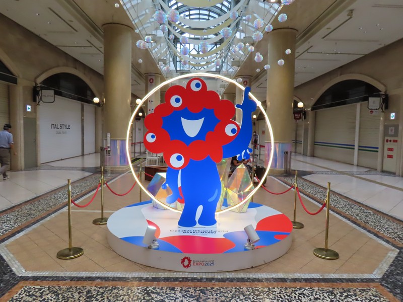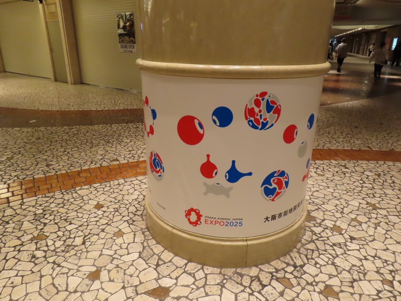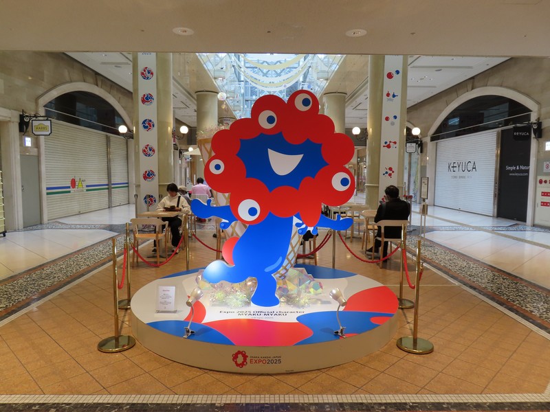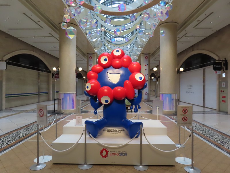 大阪駅からつながる地下街、ディアモール大阪。ここには万博のサポートデスクがあったこともあり、会期中はずっとミャクミャク像がいてくれました。ポーズが違う3体をたくさんの人が写真撮ってたね。ここはちょうど昼休みに通ることがよくあったが、万博会場の案内もあり、映像も流されていたのでよく足を止めていたな。柱にはいろんなこみゃくがいて、これを見るのも楽しみでした。これが閉幕翌日にきれいさっぱりなくなっていて、なんともいえない虚無感。