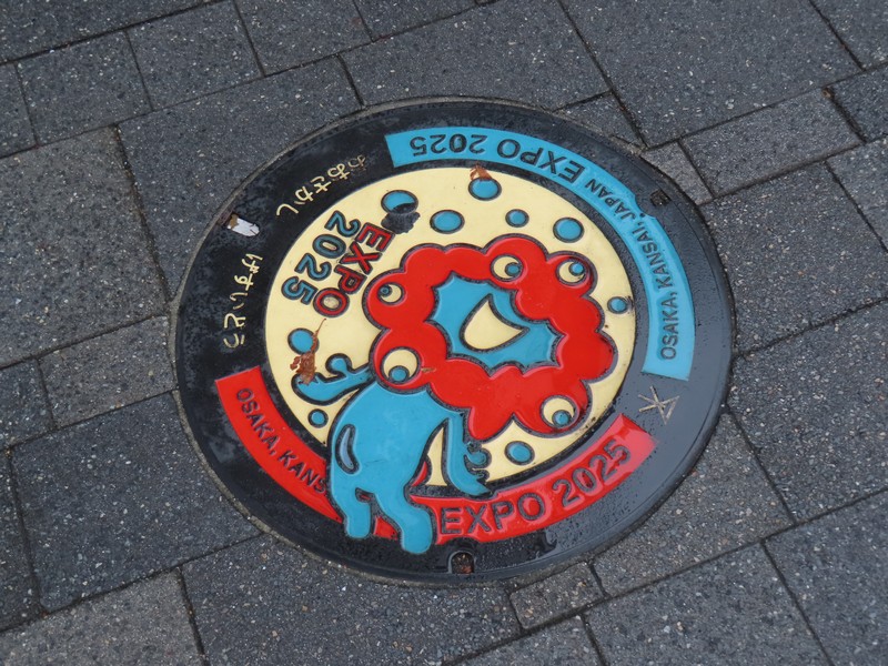 駅の近くを歩くと、街灯のポールなど、いろんなところに万博の垂れ幕。万博シンボルマークやミャクミャク、こみゃくが街中にあふれていました。この垂れ幕が設置されたころはワクワクしたな。いつの間にか日常の景色となり、会期中は当たり前のようにこの道を歩いていた。閉幕後一週間ほどで撤去されて行き、もとに戻っただけだけどなんとも寂しい感じ。仕方ないけどね。道を歩いていると、ミャクミャクのマンホールに出会えることも。これはずっと残るだろうね。