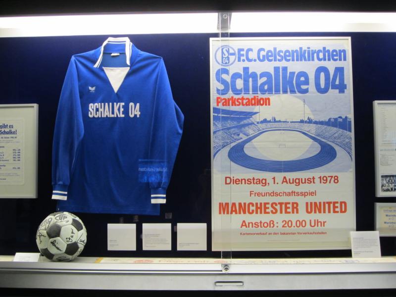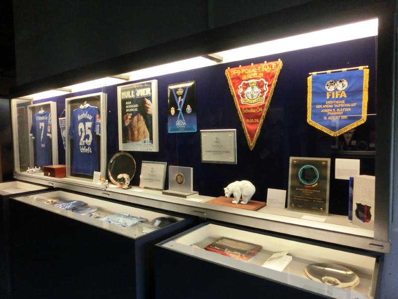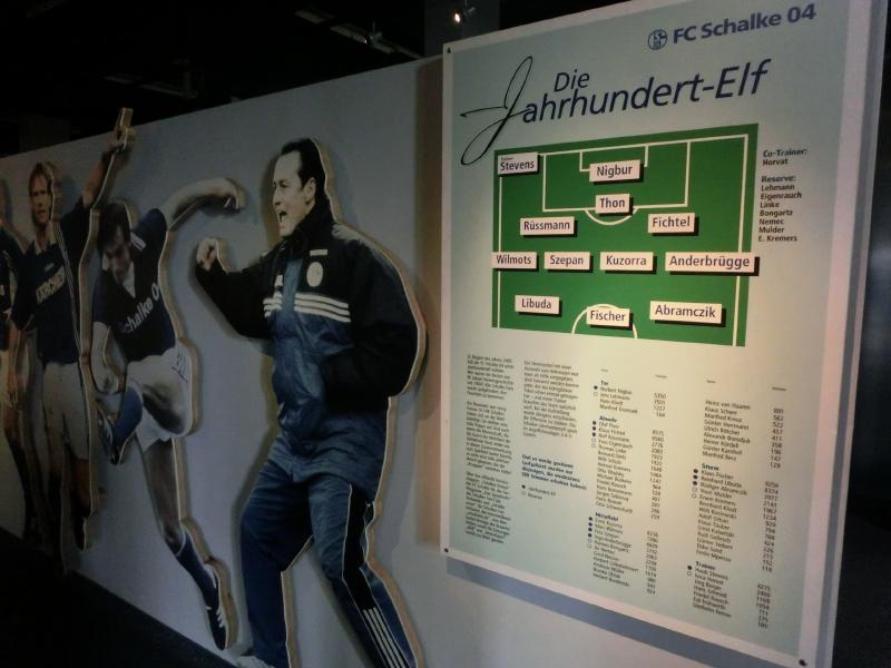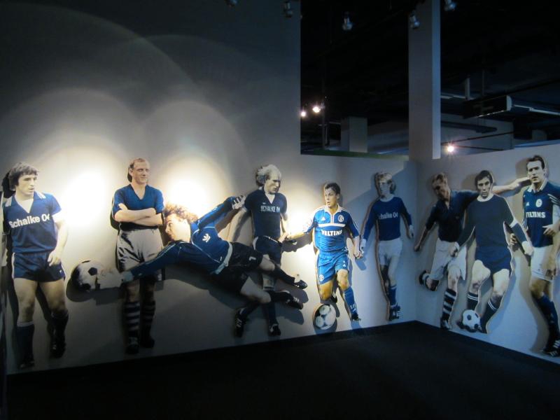 スタジアム前まできたぞ。でかいなあ。壁にはシャルケのレジェンドたちだろうか、大きなイメージ画像が書かれている。中に入り、ファンショップとやらに向かってみるがさすがに今日はやって無いようだな。スタジアムの周りをのんびり歩き、シャルケミュージアム前に到着。スタジアムツアーの集合場所はここで、まだ2時間近くあるのだが、先にミュージアムを見ることもできるので早速見てみましょうか。中に入ると、まずはシャルケ100年の歴史の中でのベストプレーヤー(ファンの投票で選んだらしい)である11名が飾られている。そのまま奥へと行くと、スタジアムの全景を見ることができる。やっぱり大きいなあ。とはいえ専用スタジアムなので、意外とピッチまでは近く感じる。明日の試合が本当に楽しみだ。