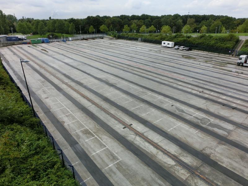 ツアーはまず外に出る。少し歩き、だだっ広い駐車場のようなところを見下ろすところに来た。ツアーのガイドはほぼドイツ語で、残念ながらほとんど理解不能。たまに英語を挟んでくれるが、それも最初だけだった・・まああとは雰囲気でね。この場所はスタジアム内の芝を出せるところで、札幌ドームと同じですね。今はなにもないが、コンサートやらほかのスポーツイベント際にはスタジアム内の芝生がここにやってくるのだ。時間はかかるだろうが、動いている様子も見てみたいものです。