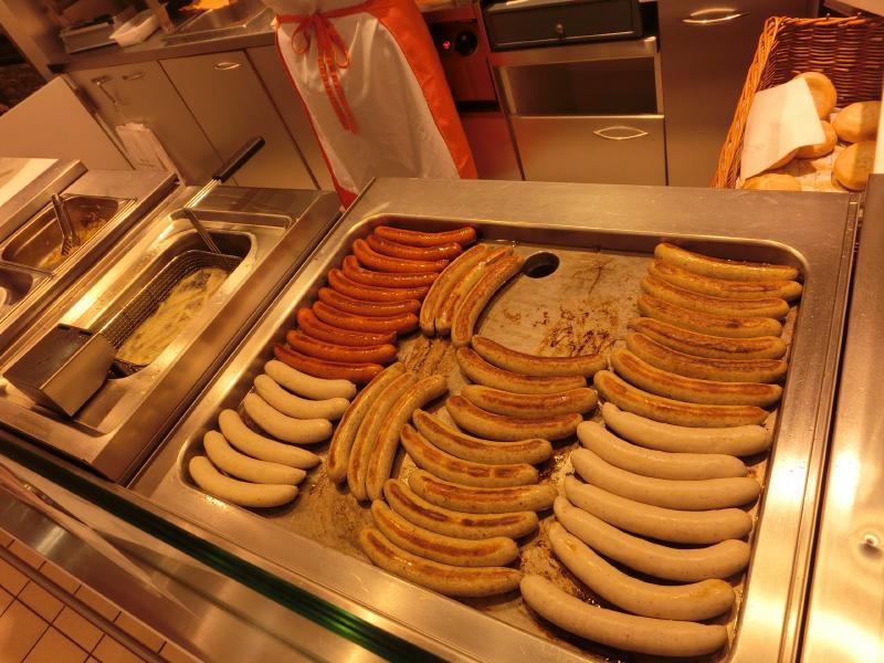 ふう、すっきりしたぞ。では街歩きをしましょう。とりあえずいろいろとスーパーを見たいので、駅の近くをぶらぶら歩いて適当に入って見る。しばらく歩いていると、さっき食べたソーセージ屋さんのすぐそばにスーパー発見。ここはよさそうだな。ソーセージ系が充実しているのが楽しいな。とりあえず目的のレバーペースト見つけたので、まずはゲットしましょう。