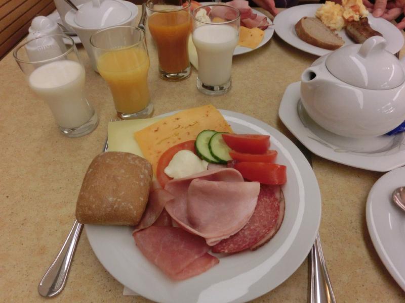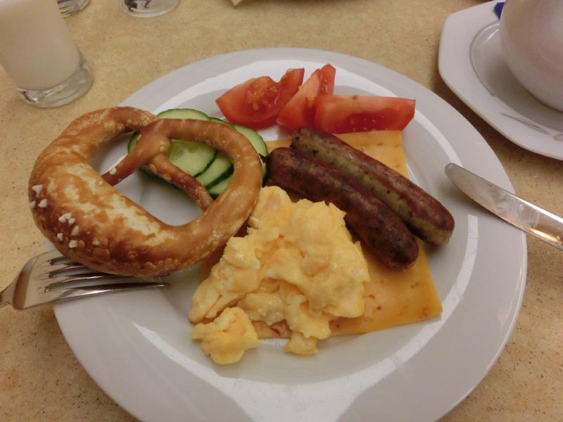 7時前に起床。シャワーでサッパリして、朝ごはんへと行きましょう。ホテルの1階に行くと朝ごはん場所があり、それなりにお客さんがいるようだ。中に入り奥の席に案内され、さっそく取りに行きますか。ケルンのホテルほどではないものの、ここもたくさんのハムやチーズがあり、温かいおかずもソーセージやスクランブルエッグなどいろいろといただきましょう。味の濃い牛乳をしっかりと味わい、ごちそうさまでした。部屋に戻って準備をして、10時前にチェックアウト。駅前のきれいで便利なホテルでした。また来る機会があれば、ここに泊まりに来よう(100E)。