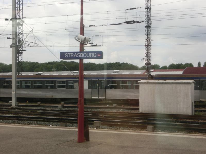 このタイプは初体験だが、タッチパネルで分かり易い。言語を選び、行き先を選び、列車を選び、シートタイプを選び、人数を選ぶ。新幹線の自動販売機と同じことかな。最後にクレジットカードを入れ、無事に購入完了(108.4E)。よし、まだ10分あるぞ。駅ナカのパン屋さんでサンドイッチを2種類買うには時間は十分(5.75E)。ホームに上がると、ちょうど電車が来るところ。シュツットガルトからストラスブール経由でパリへ向かうTGVは、2階建てでほぼ満席。われわれは1階席で、荷物をどう収めるかにちょっと苦労したが、うまく座席の隙間に入れられました。これでようやく落ち着ける。次の乗り換え駅、ストラスブールまでは40分もないので、ちょうど新大阪~岡山間くらいかな。さっき買ったサンドイッチを頂きましょう。ハム入りのとシュニッツェル入りので、いつもながらおいしいです。こうしたドイツ風のサンドイッチも、これで食べ納めかな。