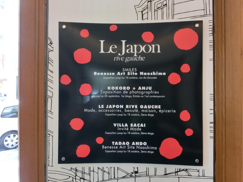 食後はお土産探し。チョコレートやマドレーヌなど、たいていのお土産はここで買えたかな(65.5E)。ボンマルシェはこの建物だけでなく、隣にもある。主にはアパレル関係だろうが、ちょっと見てみますか。となりの建物へと行くと、そこにもやはりJAPONの文字が。しかも安藤忠雄さんの名前があり、なんと直島が紹介されている。直島といえばベネッセでもあるので、ベネッセハウスなどの紹介や会長のコメントなど、とてもパリにいるとは思えないようなビデオが流されていました・・・その部屋を抜けると書籍コーナーがあるのだが、ここもJAPONが紹介されており、村上春樹さんをはじめとして、たくさんの日本の作品が平積みされている。最近のパリは日本ブームとも言うが、こんなところにも表れているんだね。