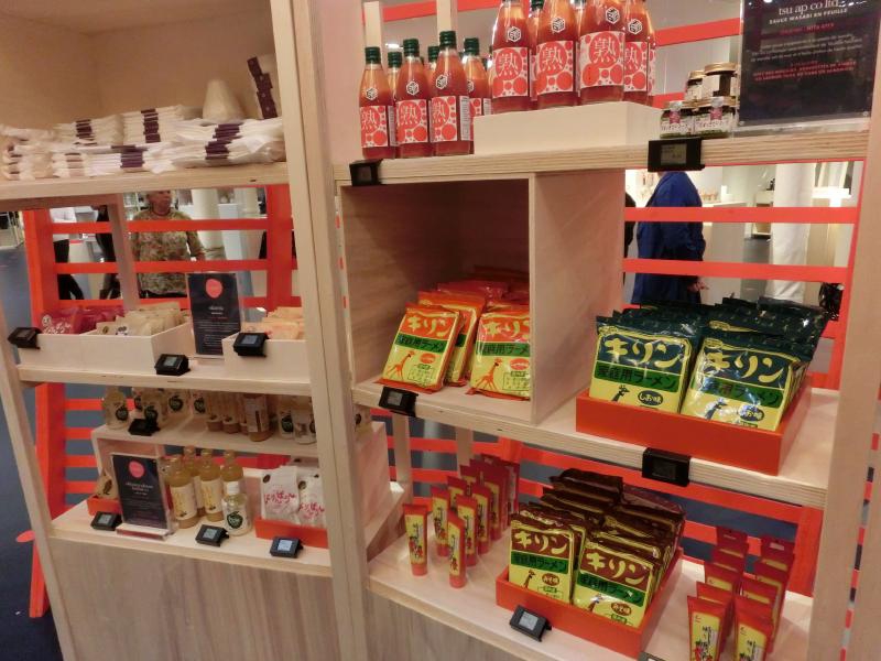では再び街歩き。しばらく歩くと、Sevres Babylone駅のエリアに来た。そして昔からよく来ているデパート、ボンマルシェに到着だ。中に入ると、まず目につくのがJAPONの文字。たまたま日本フェアをやっているタイミングらしく、日本の米や酒、お菓子や調味料などがたくさんありました。さらに店内の様々なところに寿司やラーメンなど、日本の食を紹介している。日本ではあまり見かけないような商品も数多く並べられていて、これは面白いなあ。