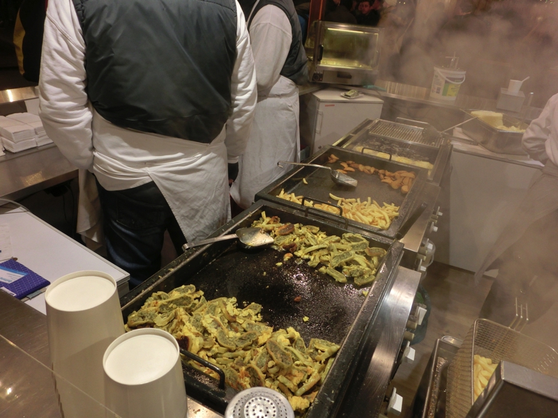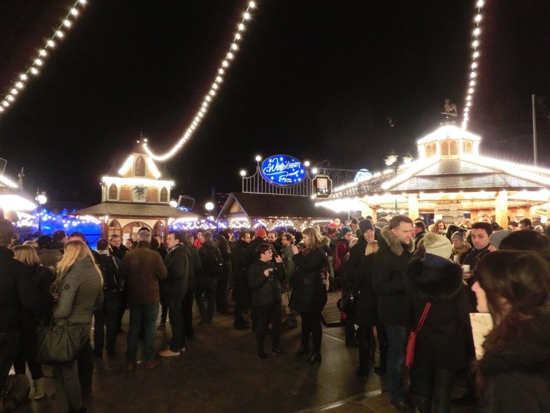 ここは広いなあ。スケートができるところもあるし、お店もたくさんある。こちらの方がゆったり大きめに作られているようだ。いろいろと食べるものもあるので、もう少し何か食べよう。ソーセージが続いていたが、ここではマウタッシェンという餃子のようなのにしよう。大きな餃子をスライスして焼いたようなもので、付け合せのジャガイモとともに食べる。もちもちした皮の食感と、少しハーブの効いたひき肉とがいい感じ。初めて食べたが、こういう料理もあるんだね。おいしかったです。