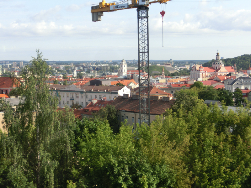 ホテルの最上階に行くと、エレベーターを降りたところからヴィリニュス旧市街が一望できる。ホテルの名前がパノラマ、まさにその通りの景色だ。天気もいいし気持ちがいいが、ど真ん中にクレーンが。うーん、景色的にはなんとかならないものか。なんともならないな。さあ、今日はこの後バスでカウナスへ移動する。荷物をまとめましょう。