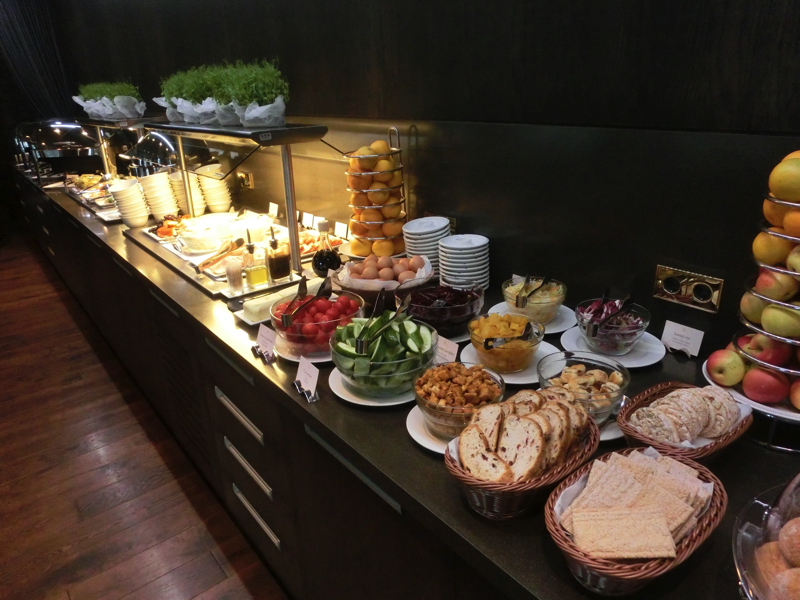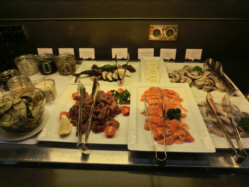 7時に朝ごはんへ。一番乗りなのでビュフェがきれいに並んでいる。8時半にはホテルを出るので軽くしようと思いながら、結局ハムやチーズや酢漬け魚やサーモンなどと、いろいろと食べてしまいます。