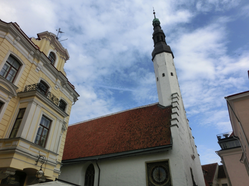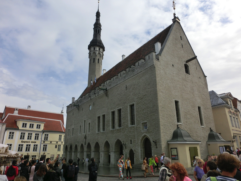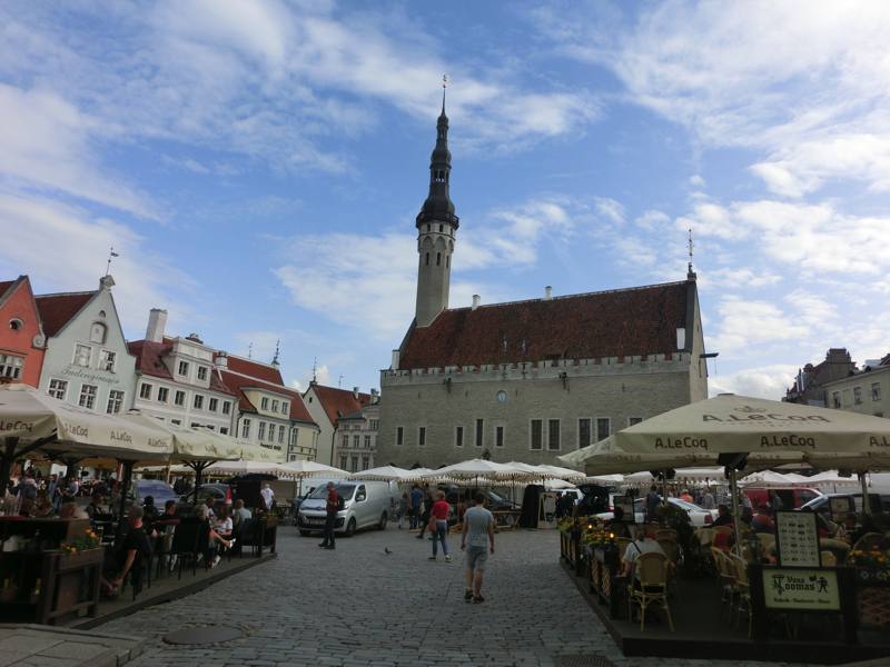少し休憩していると、どうやら雨が降ってきた様子。空は明るいけどね。しばらくして雨が上がったので、街歩きに出発だ。まずは遅めの昼ごはんへ向かうが、ヴィル門からの通りやラエコヤ広場など、きれいな景色が続いている。ここはヘルシンキから近いこともあり、今までの街の中で一番観光客が多いようだ。特にアジア系の人も多いようで、一日ツアーで来ている人も多いんだろうな。ラエコヤ広場には旧市庁舎があり、北ヨーロッパに残る唯一のゴシック建設の市庁舎。