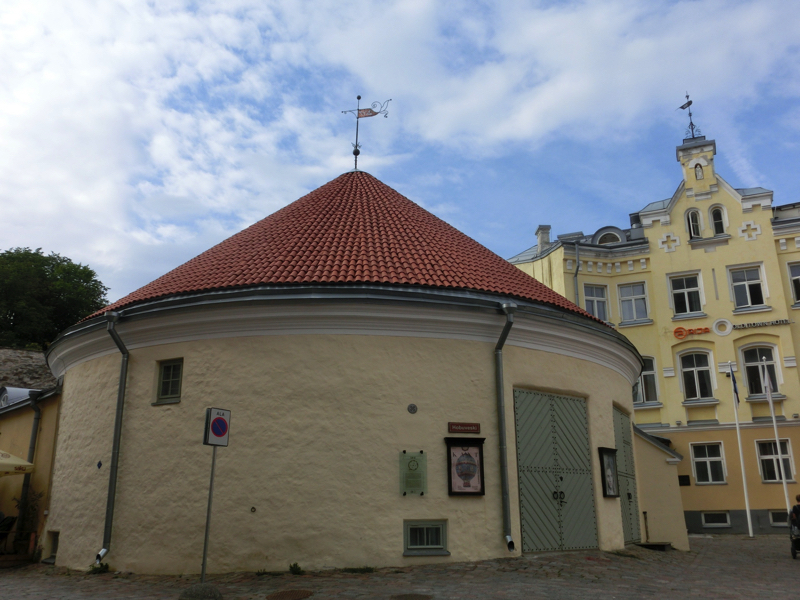 外に出ると、青空が雲間から覗いている。では街歩きしましょう。古い街並みや城壁を写真に収めながら歩き、三人兄弟と呼ばれる住宅の集合体に到着。同じようなのがリガにもあったよね。これが厳格な表情ととらえられているようです。そのすぐ先にあるのが聖オレフ教会、こちらは13世紀に建立された高さ124メートルの教会、この塔には展望台があるのだが、どうも現在は全体的に修復中のようで、入れそうにない。なので先へと進む。粉ひき小屋を過ぎ一旦旧市街からはでる。海や港が見え、船が泊っているがあれはヘルシンキ行かな。再度旧市街に入るが、その門の脇にあるのがふとっちょマルガレータと呼ばれる砲門跡、今ではエストニア開運博物館になっている。