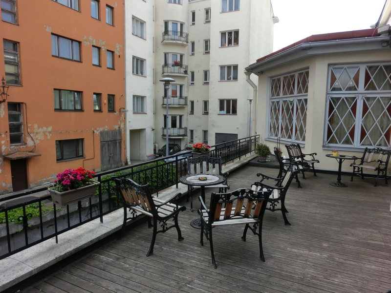 ここは新しいきれいな建物だが、少し郊外にあるのでトラムに乗る。バスターミナルから少し歩いたところにトラムの駅があり、旧市街行の2番線に乗る。運転手さんから直接チケットを買い(@2)、外の景色を見ていると目印のViruホテルを発見。そこを過ぎて最初の駅で降りる。ここがちょうど旧市街の入り口近くなので、石畳の道を少し歩くと今日のホテル、Tallininaに到着。お疲れ様でした。こじんまりとしたかわいい感じのホテルだ(99.45)。