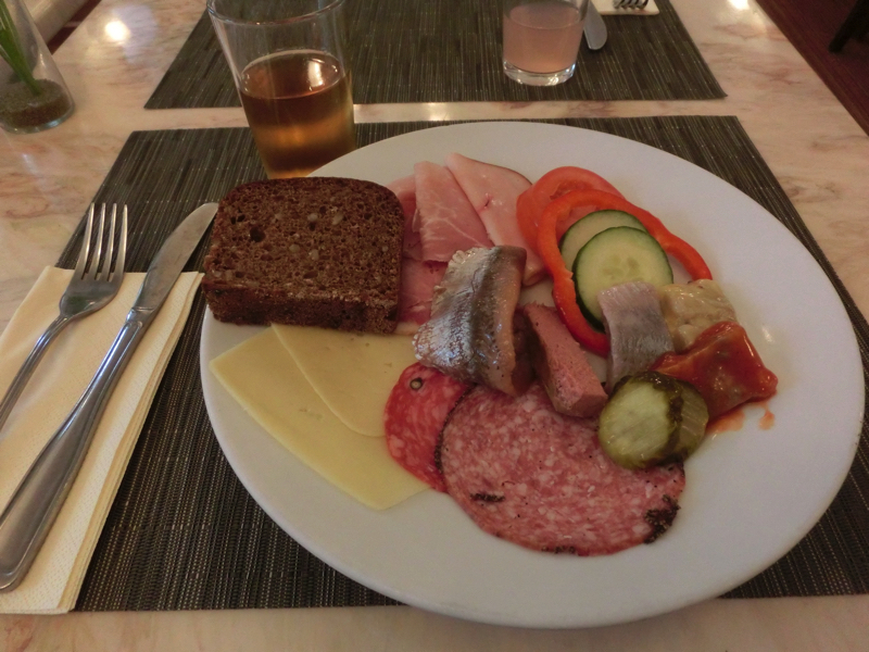 7時過ぎに朝ごはんへ。北欧に入り、大きなホテルでもあるので朝ごはんも種類が豊富だ。ハムやチーズ、ニシンの酢漬けなど、いろいろといただきましょう。そんなに多くの人はいないものの、今まであまり見なかった日本人の姿もみえるようになってきたかな。食後のヨーグルトやコーヒーまでいただき、朝の栄養補給はばっちり。ごちそうさまでした。