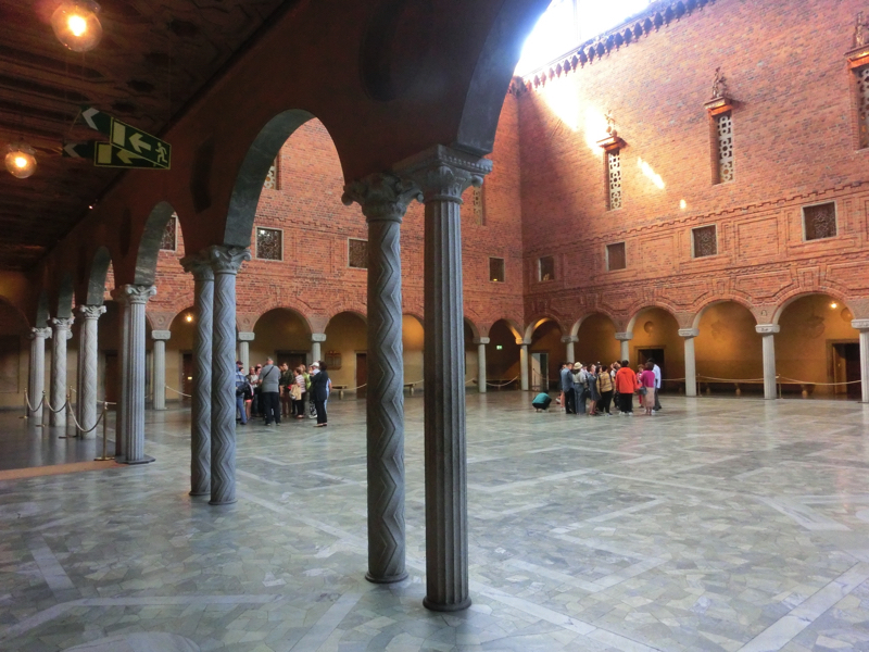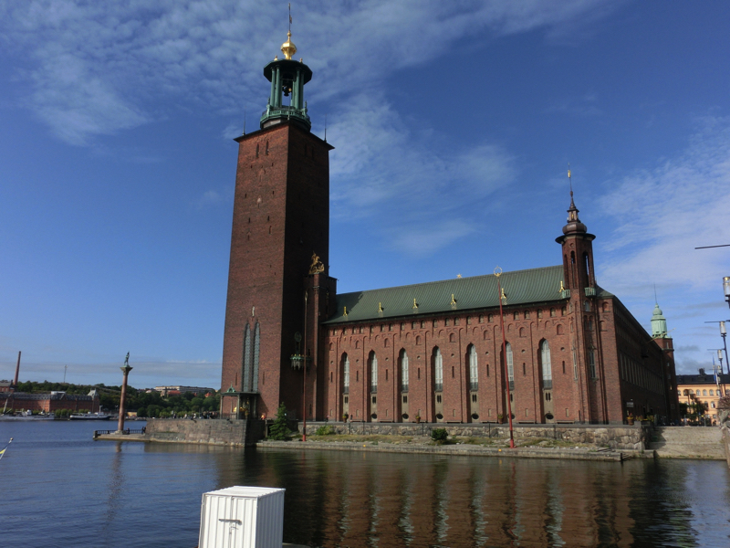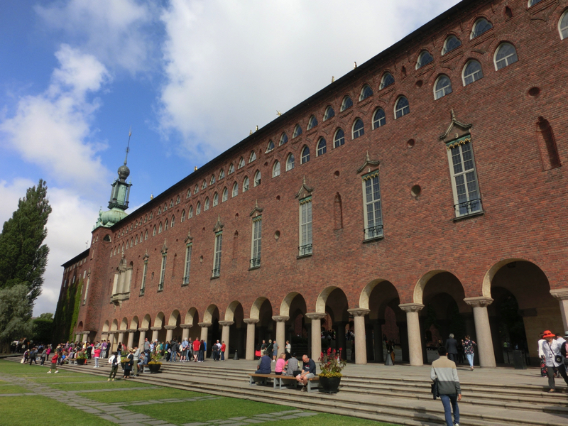 ホテルをチェックアウト。荷物を預かってもらい、ホテルを出る。まずは市庁舎に向かいたいが、道が入り組んでいてよく分からない。とりあえず目の前にストックホルム中央駅があるので入ってみると、ちょうどインフォメーションがあったので聞いて見ましょう。行き方を教えてもらい、本当にここか、という道もありつつも進んでいくと、線路を越える道を行く。そして駅の向こう側にいくことができた。あとは市庁舎までは道なり、無事に到着しました。
