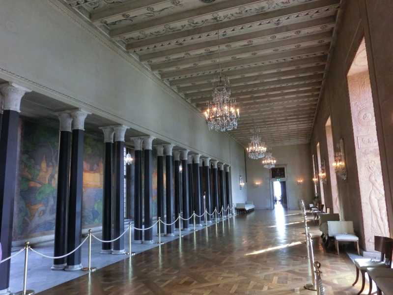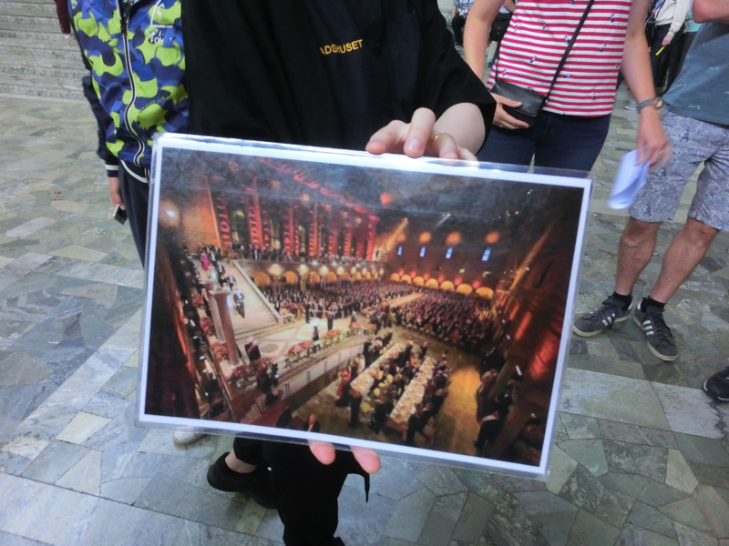 市庁舎の見学ツアーというと、これはノーベル賞の授賞式に関する見学ということ。まずは大広間、ここは受賞者を祝うディナーが振舞われる場所。