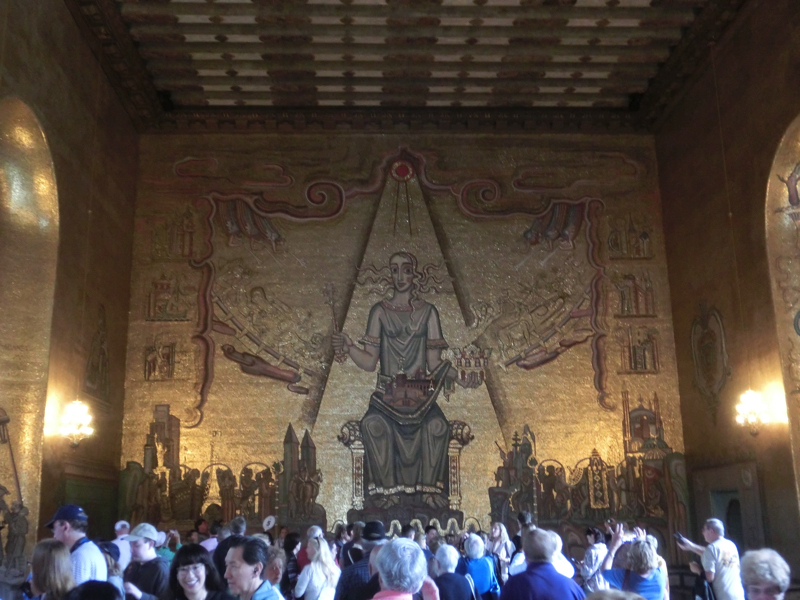 中に入ると中庭のようになっており、たくさんの人がいるが我々の目的は市庁舎見学なのでとにかく中へ。すると受付があり、9時スタートの見学ツアーがちょうど始まるとのことで参加することができました(@120)。まさにグッドタイミング、15人くらいのツアーが始まりました。