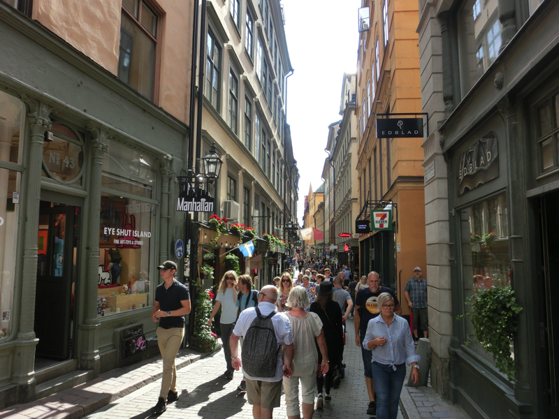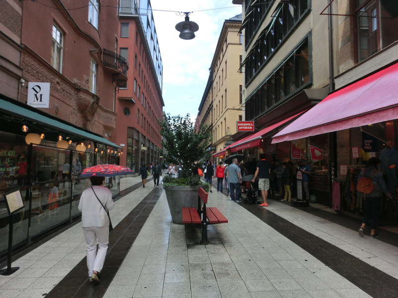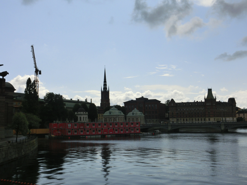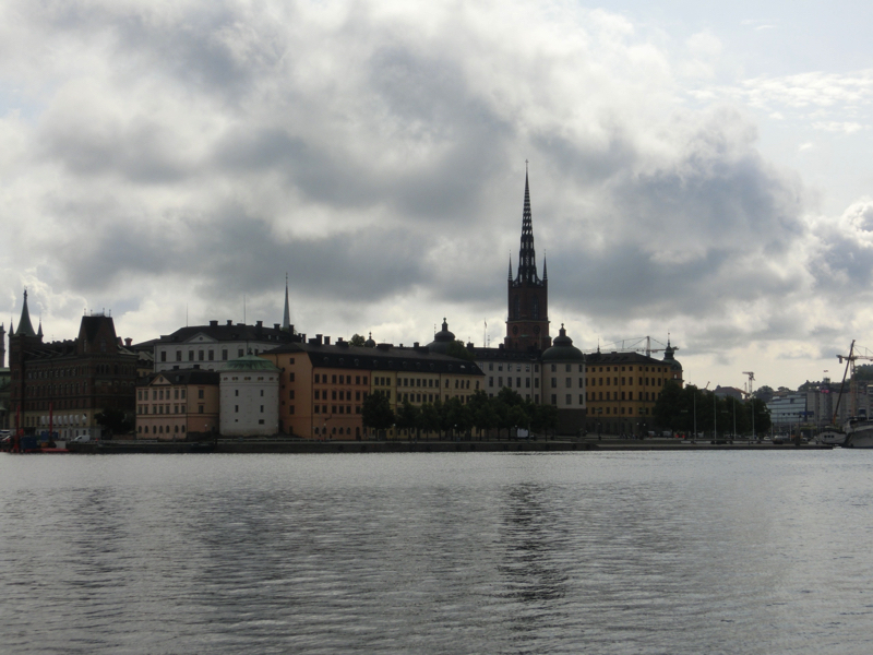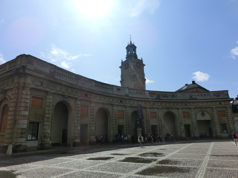 ここからホテルへ向かって歩いていくが、その途中の橋からは朝に行った市庁舎が見えた。そのまま周りをみると、今回は行けなかったがリッダーホルム教会も見える。そして先へ歩くと国会議事堂を通り抜ける。このあたりは、まさにストックホルムの中心街といった感じだ。少し雨が降ってきたかな。賑やかな街並みをぶらぶら歩き、ホテルに戻ってきた。荷物を受け取り一息ついて、では港へと向かいましょう。