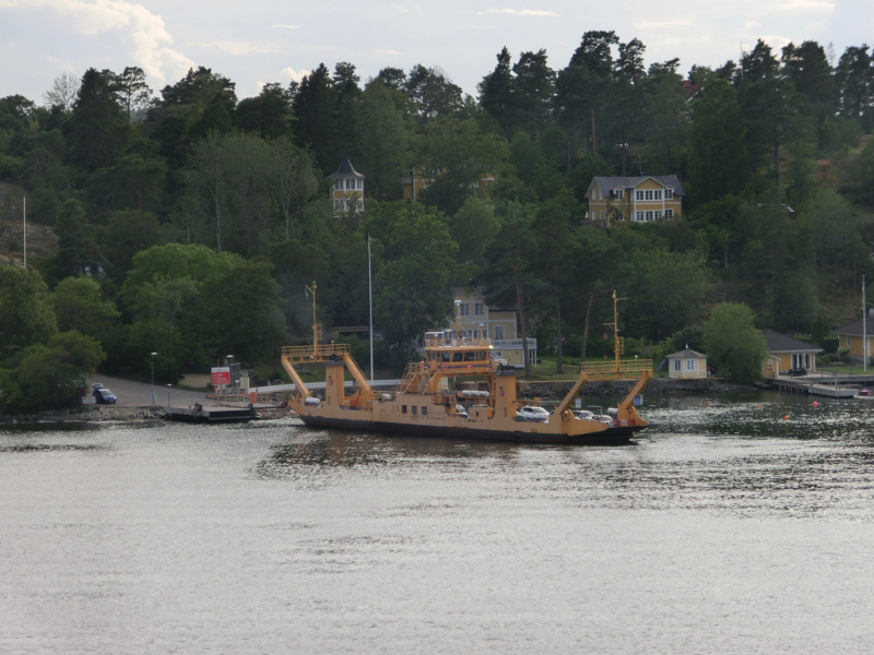 16:45の定刻となり、船は出発。しばらくデッキで景色を楽しむ。たくさんのカモメがついてくるが、これはどこまで来るんだろうね。船の左右にはずっと島が見えるが、地図を見ると、まさに無数の島がある。小さな無人島も多いが人の住む島も多く、島間の交通に車を乗せた船が行ったり来たりするのは尾道向島間と同じような感じかな。その島々の間を縫うように船は進む。海面はまるで鏡のように、ほとんど波もない。あまりに揺れないので、船に乗っていることを忘れてしまいそうだ。しばらくは船内の探検や7Fプロムナードのお店を見たりして、部屋に戻りましょう。
