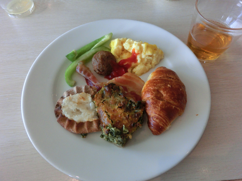 朝ごはんは一応朝7時からで、少し早めに行ったがすでに多くの人がいました。ハムやチーズ、ニシンやサーモンなどいつも通りに頂く。サーモンはおいしいがもうちょっと脂ののりが少なくてもいいかもね。温かい料理でとったマッシュポテトのパイ包みのようなのは微妙。でもいろいろちょっとづつ食べられるのはいいね。食後にはヨーグルトとコーヒーをたっぷりいただき、ごちそうさまでした。さて、では最後にお土産ショッピング。北欧デザインのTシャツなどゲットし(43.4)、部屋に戻って荷造りしましょう。