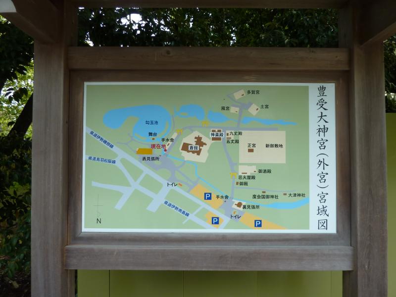 では伊勢神宮へ参拝しましょう。今日はまず外宮からで、ここは「豊受大神宮」といい、天照大神のお食事を司る神、豊受大神をお祭りしているらしい。衣食住をはじめとするあらゆる産業の守り神ということなので、しっかりお参りしないとね。表参道の火除橋を渡り、まずは手水舎で心身を清める。このすぐ近くには現在「せんぐう館」が建設中。今行われている第62回神宮式年遷宮を記念して建てられる。伊勢神宮に関する様々な展示が行われるようで、楽しみだな。第一の鳥居を過ぎ、緑の中をゆっくり歩く。なんだか気持ちがいいな。