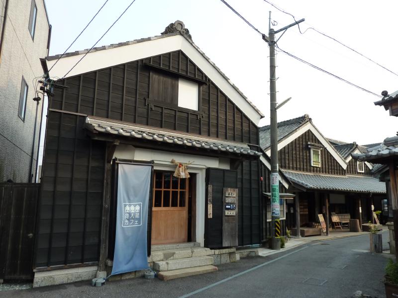 4時を過ぎたぞ。そろそろ出かけますか。ホテルを出て、駅の反対方向へと歩いて見る。住宅街の細い路地を抜けて行くと川に出た。このあたりはかつて問屋街として栄えた河崎という地区なのだ。今も黒い壁の蔵がいくつか並んでいて、静かで風情のある佇まいだ。そんな蔵を利用したカフェやレストランなどあり、なかなかいい感じだ。